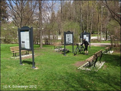 Geschichte und Bedeutung der Bahnlinie sowie ein Höhenprofil der ungewöhnlichen Strecke kann man sich ansehen, auch Bänke zum Ausruhen sind vorhanden: gut gemacht!
