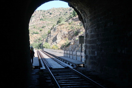 Weiter vor uns auf der Bahntrasse erscheint wieder ein Tunnel, die Nummer 5, La Belleza, 76 m.