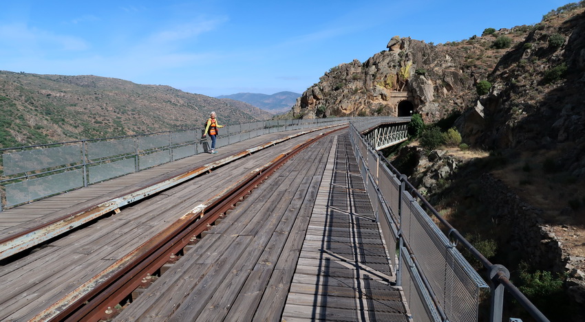 Dafür ist der 3. Tunnel (Morgado) wieder länger, ganze 423 m, aber wegen der Fledermäuse in diesem Jahr noch gesperrt. Wir folgen der Umgehungsstrecke (1,3 km). Der Tunnel verläuft in einer langen Kurve, die Bahnstrecke führt nun nach Nordwesten und folgt dem Río Águeda, der den Río Morgáez aufgenommen hat.
