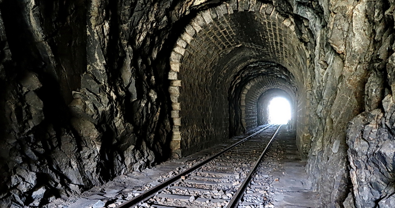 Die Sonne ist nun schon höher am Himmel. Im Morgenlicht liegt schon der 2. Tunnel vor uns, nur 33 m lang.