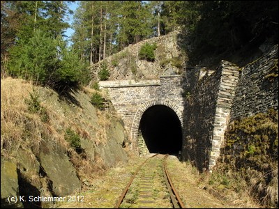 Dann erreicht man den Bahnhof Liebschütz (Privathaus). Der nächste Tunnel ist der Schweinebach-Tunnel, 109 oder 89 m lang (die Angaben differieren).