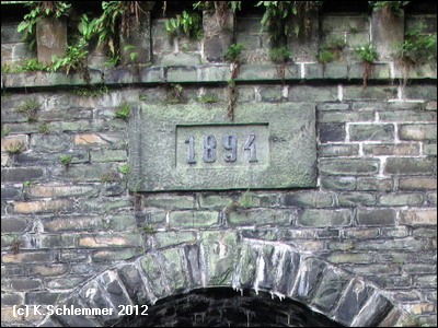 Am Ende des Tunnels geht es direkt auf die Saalebrücke. Der Blick zurück zeigt über dem Tunnelportal die Jahreszahl 1894.