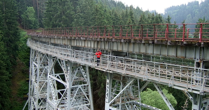 Ein paar Daten (lt. Infotafel vor Ort): gebaut von 1893-1895, 10 Brückenpfeiler, zweimal wurde die Konstruktion verstärkt. Höhe über dem Tal: 32 m, Länge: 115 m . Rund 55.000 Nieten halten den grazilen Koloss von ca. 280 Tonnen zusammen.