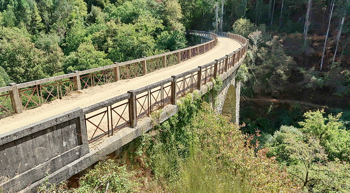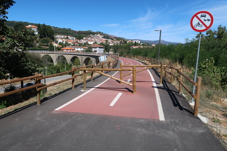 Bei Vouzela in Richtung Viseu ist die Trasse inzwischen ebenfalls als Radweg ausgebaut ( siehe Bildteil und Beschreibung weiter unten). In diesem Abschnitt liegen drei weitere Tunnel und 2 große Brücken. Bei Sao Pedro do Sul ist der Radweg auf 2,6 km asphaltiert. Die Strecke führt über das Viadukt Ponte do Pego, das in luftiger Höhe die Schlucht des Rio Vouga überspannt.
