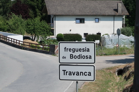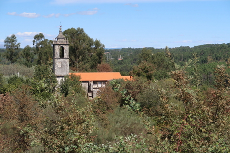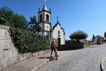 Die Bahntrasse durchquert ein Waldgebiet, nächste Station ist Bodiosa. Der reichlich mit Sperren verbarrikardierte Radweg erreicht schließlich die Kirche São Miguel Arcanjo.