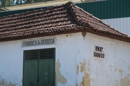 Wieder ein alter Kornspeicher am Wegesrand, dann liegt der Bahnhof Moçamedes vor uns. Kilometer 123,559. noch etwa 17 km zum Ziel in Viseu.