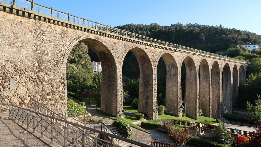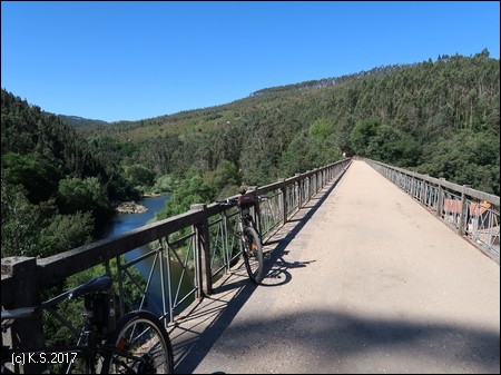 Die Ponte do Pego aus dem Jahre 1914 ist ein Prunkstück dieses Radwegs, 10 Steinbögen, 87,7 m lang und 23 m hoch (so steht es auf der Informationstafel am Rastplatz an der Brückenauffahrt).