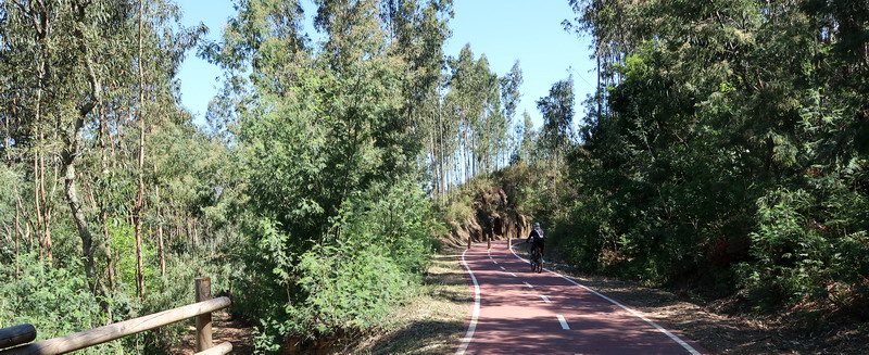 Die Bahntrasse verläuft nun direkt neben der Straße. Doch schon bald zweigt die Ecopista von der N16 nach links ab und führt durch ein Waldgebiet Richtung Arcozelo.