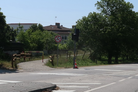 Unverkennbar Bahntrasse! Nach kurzer Fahrt muss die Straße überquert werden.