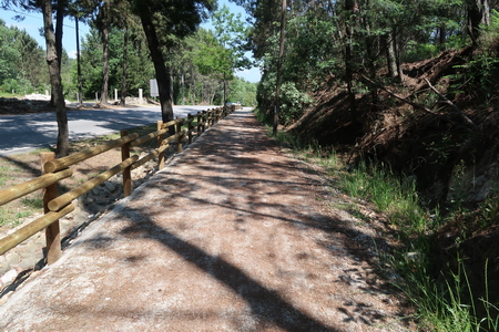 Nach Überquerung der EN-16 setzt sich die Ecopista noch 400 m fort, dann muss man noch einen unfertigen Abschnitt umfahren (ca. 800 m auf der EN-16).