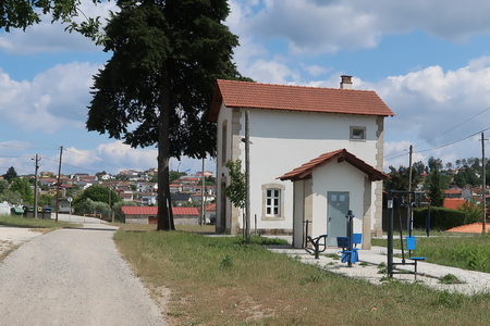 Nach knapp 500 m erreicht man den Haltepunk (Apeadeiro) von Mozelos (Moselos). Das Gebäude wurde hübsch restauriert. Etwa einen Kilometer kann man dem Radweg noch folgen, dann ist die Trasse durch den Autobahnzubringer unterbrochen (Stand 05/2023).