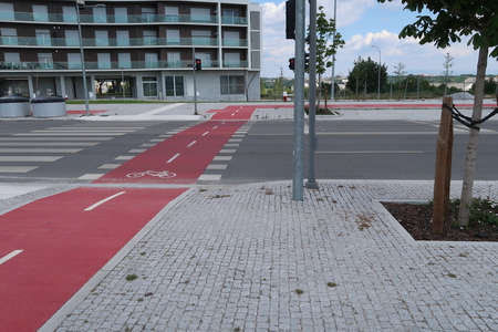 Im Stadtteil Santo Estêvão biegt der Radweg links ab und endet kurz darauf unvermittelt nach einer Ampel.