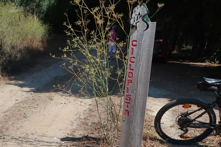 Mit dem Ausbau der Ecopista kamen auch die viel zu breiten, scharfkantigen Sperren und die Verkehrsschilder.