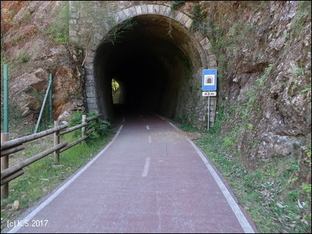 Schon kurz vor Kilometer 1 erscheint der erste, kurze Tunnel (Rodao, 29m).