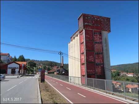 Mächtige Silos kennzeichnen das Bahnhofsgelände von Paradela.