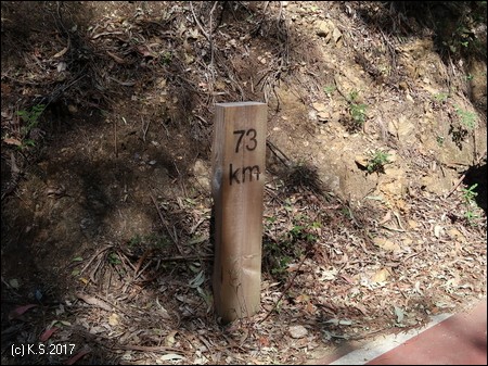 "Kilometer 73" steht auf dem Pfosten, diesmal ist die Kilometrierung der Bahnstrecke gemeint. Schon naht der nächste Tunnel, 32 m lang.