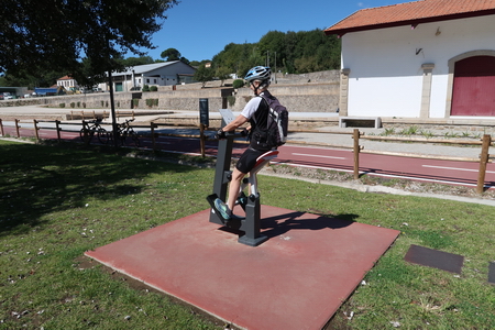 Der Bahnhof S.Pedro do Sul ist ein schön restauriertes Gebäude. Offensichtlich war hier eine Gaststätte vorgesehen, aber leider war bei unserem Besuch alles verwaist. Dafür laden die modernen Trimmgeräte zu sportlicher Betätigung ein.
