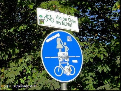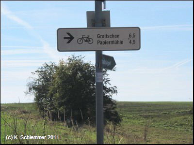 Schon ab Gera ist die Zufahrt beschildert (Richtung Mühltal). D4 Route und derThüringer Städtekette Radweg benutzen die gleiche Strecke bis nach Kursdorf.