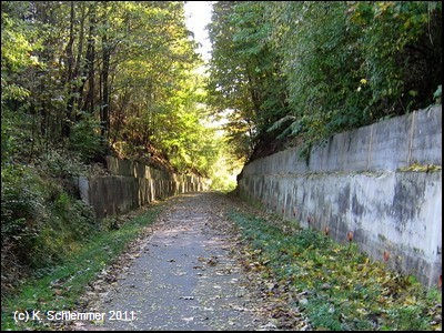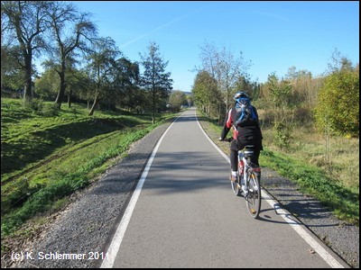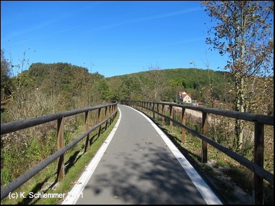Dieser Pfad ist allerdings nicht so richtig Radweg konform. Dann geht es auf der Trasse durch einen "grünen Tunnel".