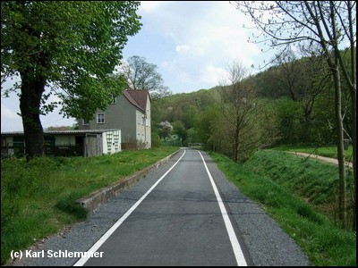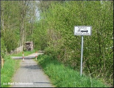 Dann erreicht man die Bahnhofstraße. Der Radweg verschwenkt nach rechts und folgt der Bahntrasse auf einem asphaltierten Weg.