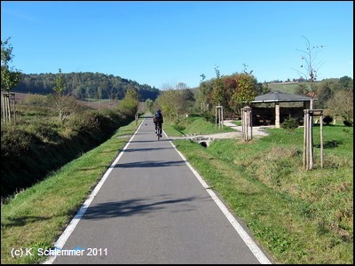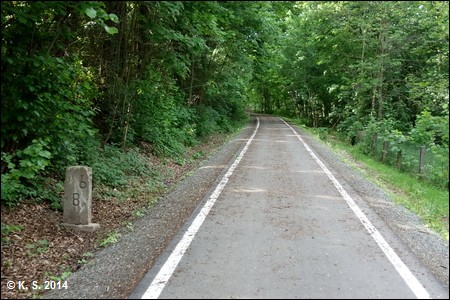 Am Rande der Strecke sind die alten Hektometersteineerhalten geblieben. Hier ist die Gestaltung des Radwegs gelungen.