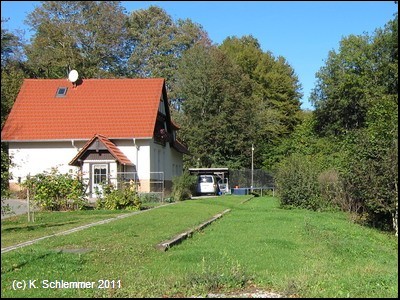 Bahnhof Rauda (Blick talwärts): - externer Link: So sah es noch im Jahre 2005 aus Kilometrierung: Erinnerung an die Eisenbahnstrecke