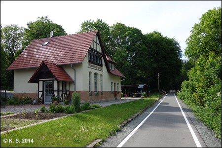 Der Bahnhof Eisenberg-Ost, hübsch restauriert, wird als Wohnhaus genutzt.