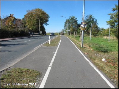 Nun geht es Stadt auswärts. Der Radweg führt direkt an der B7 entlang.