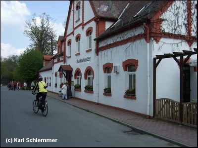 Der Bahnhof von Hainspitz liegt abseits des Radwegs. Wir überqueren die B7 und fahren zum Hainspitzer See- nun abseits der alten Bahntrasse.