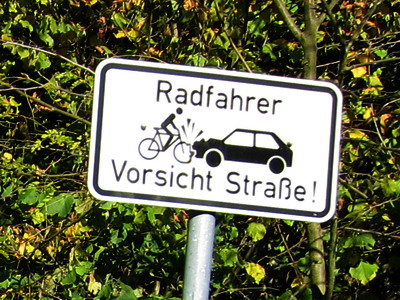 An der Straßenkreuzung steht dieses nette Warnschild.
