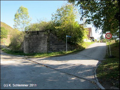 An den Resten der alten Brücke, am Gasthof Gleistal, endet der Bahntrassenradweg.