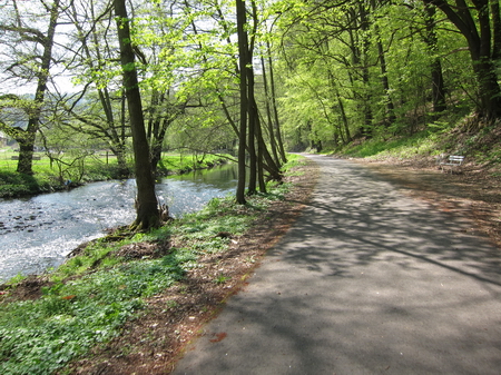 Nach 250 m überquert man die Felda, dann wieder links abbiegen und am Fluss entlang.