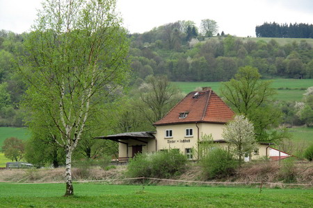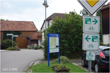 Am Wasser entlang und irgendwie zum südlichen Ortsende. Ein Wegweiser führt nach Kaltensundheim.