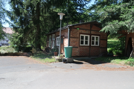 Das Nebengebäude aus Ziegelsteinen erinnert doch sehr an die Güterschuppen der Eisenbahn.