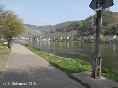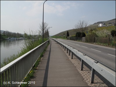Wir folgen dem Mosel-Radweg, zunächst noch entlang der Straße, dann aber abseits des Autoverkehrs entlang des Flusses.