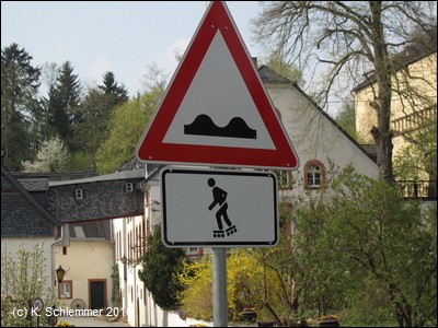 An der Klostermühle steht dieses originelle Warnschild: Inliner Vorsicht, Buckelpiste. Weiter geht es durch die blühende Landschaft.