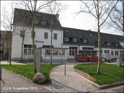 Das Gebäude wird restauriert. Durch die Stadt muss man gut auf die Beschilderung achten, die Wegweisung ist auch auf den Boden gemalt! Noch 36 km bis nach Daun.