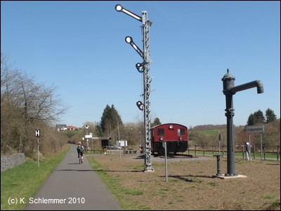 In Laufeld müssen wir wieder einer kurzen Umfahrung folgen, der Bahnhof liegt etwas abseits des Ortes an der L64. Bei Wallscheid geht es wieder auf die Trasse.
