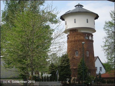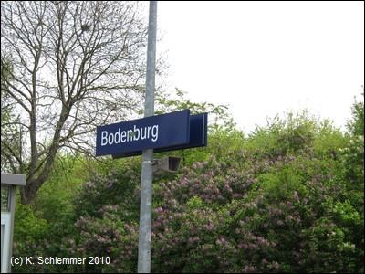 In Bodenburg geht es los! Auf dem Bahnhofsgelände sind ein alter Wasserturm und die Gebäude des Bahnhofs erhalten geblieben.