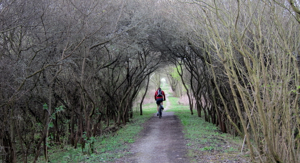Der geschütze Bereich des Bahndamms Wendehausen muss von den Radlern umfahren werden.