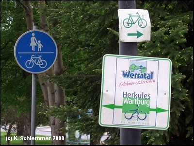Man folgt der Beschilderung Richtung Heldra. Noch vor dem Ort muss man vom Werratal-Radweg rechts abbiegen.