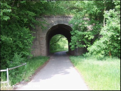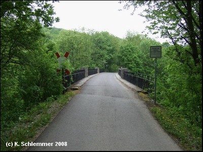Der folgende Abschnitt teilen wir uns mit dem Anliegerverkehr, die überflüssige Klappsperre steht wohl meist offen. Wir erreichen das Viadukt von Heyerode!
