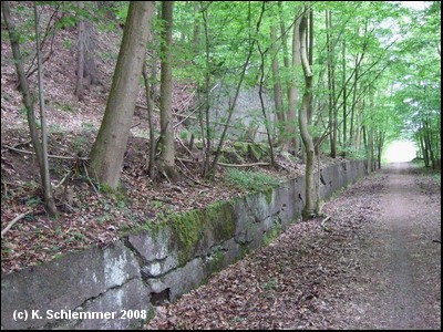 Nach einer kurzen Rampe bergauf erreicht man das alte Kalkschotterwerk Normannstein.