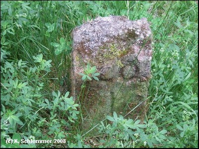 Ein alter Hektometerstein der „Bimmelbahn“ nahe der Grenze