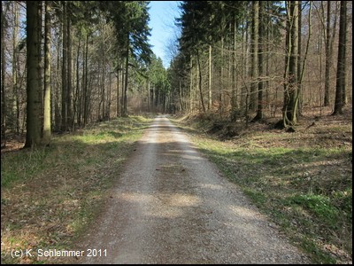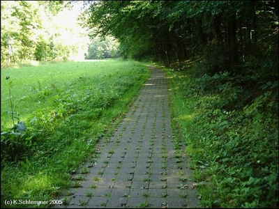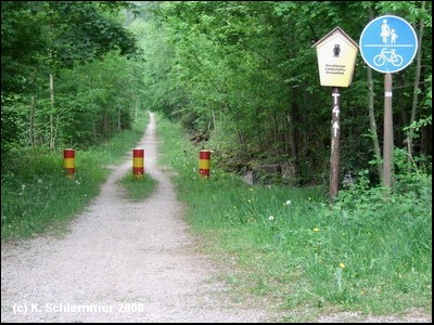 Ein kurzes Stück geht es am Waldrand entlang. Nach einem kurzen Schlenker ist man auf der Bahntrasse. Ob die Pfostenperren etwas nützen sei dahingestellt, eine Umfahrung ist leicht möglich.