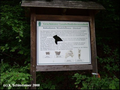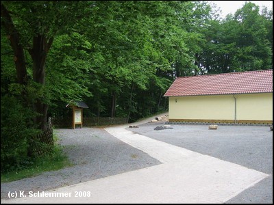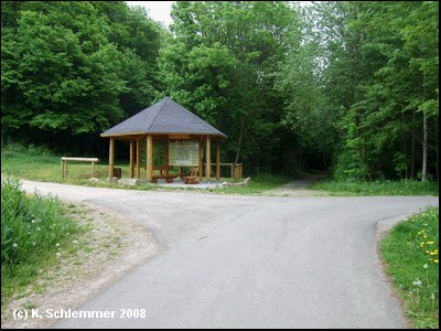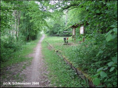 Wir erreichen den ehemaligen Haltepunkt Normannstein mit Eisenbahnrelikten und Informationstafeln. Im Mai 2008 machte der Rastplatz einen vergessenen Eindruck.