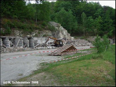 Die verfallenen Anlagen wurden inzwischen abgerissen, das Verwaltungsgebäude restauriert (Privatbesitz!)