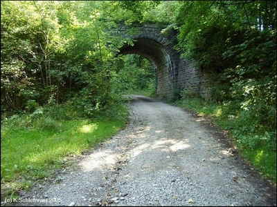 An der Landesgrenze zwischen Hessen und Thüringen wird die alte Bahnlinie der Vogteier Bimmelbahn unterquert.