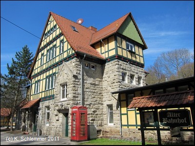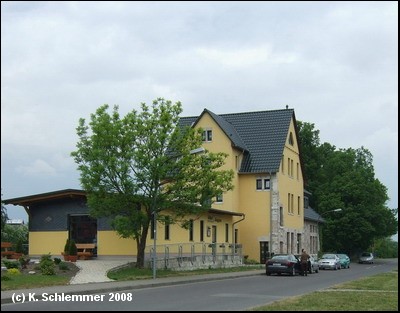 In Langula führt die Wegweisung entgegen der Fahrtrichtung durch die Einbahnstraße. Der alte Bahnhof Langula ist heute ein Wohnhaus.
