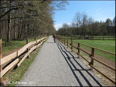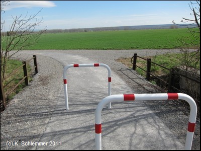 In diesem Abschnitt ist besondere Vorsicht geboten, Pfostensperren und deren unfallträchtige Reste befanden sich 2011 mitten auf der Fahrbahn.
